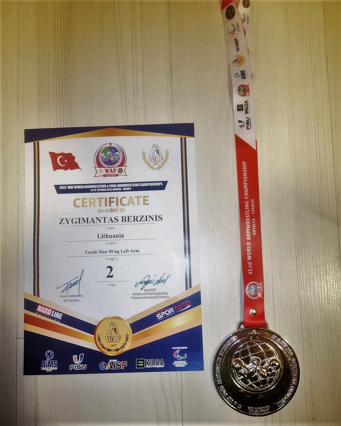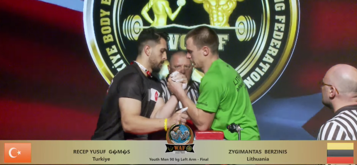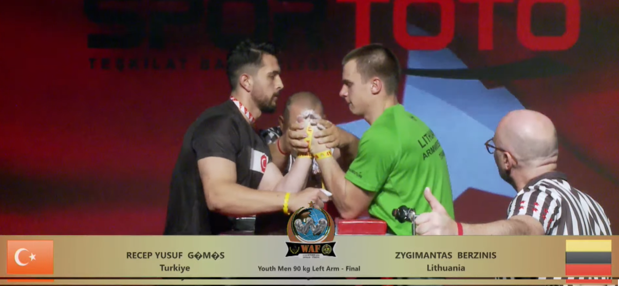 Žygimantas Berzinis (Mažeikiai) pasaulio čempionatą Turkijoje pradėjo su trenksmu. Kaire ranka, svorio kategorijoje iki 90 kg., puikiai kovojęs ir net keturis priešininkus įveikęs sportininkas su vienu pralaimėjimu pateko į finalą. Deja finale Žygimantui, pritrūko jėgų ir teko pripažinti Turkijos atstovo Recep Yusuf pranašumą. Iškovota antra vieta keliauja į Lietuvą! Rytoj palaikome Žygimantą! Po pirmos dienos puikiai nusiteikęs sportininkas dešine ranka bandys pakartoti, o gal net pagerinti rezultatą!